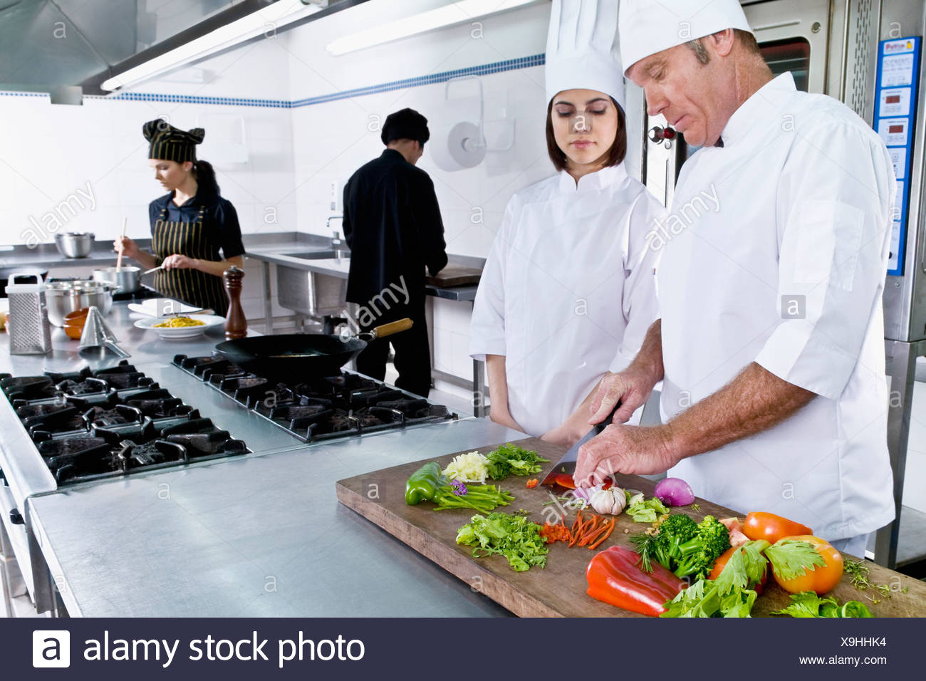Chef Cocinando La Comida En La Cocina Fotografia De Stock Alamy