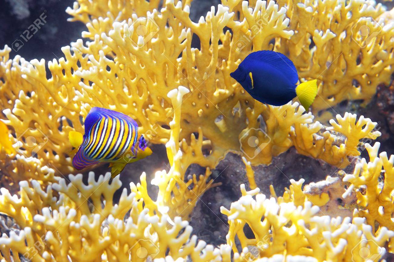 Cnidarios Coral Peces Angel Y Zebrasoma Fotos Retratos Imagenes Y Fotografia De Archivo Libres De Derecho Image 16603719