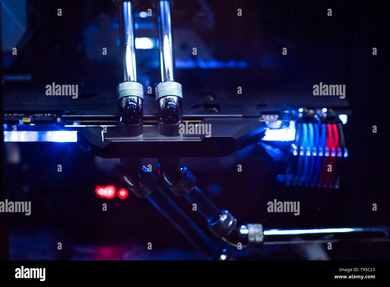 Dentro De La Cpu Del Juego Del Pc De Sobremesa Y Por Agua De La Refrigeracion Con La Situacion De La Demostracion De La Luz Del L Imagen De Archivo Imagen