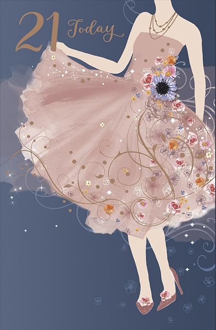 Cards Galore Online Tarjeta De Cumpleanos Para Mujer De 21 Anos Para Mujer Joven Vestido Rosa Y Flores De 22 86 Cm X 14 9 Cm Amazon Es Hogar