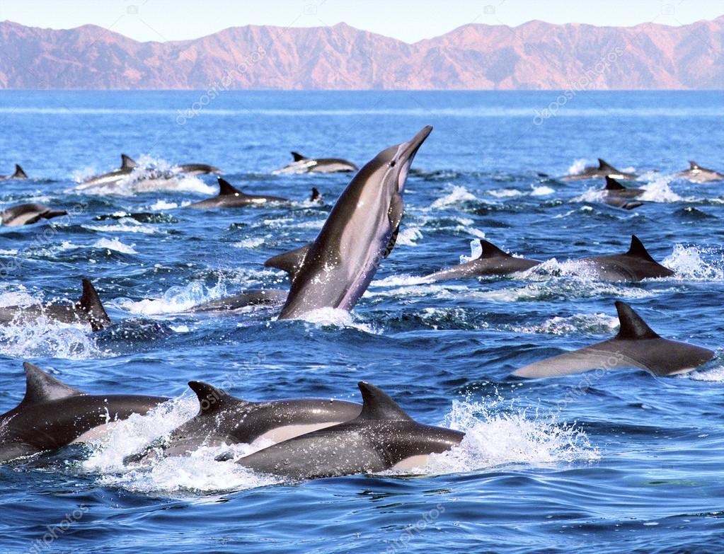 Una Gran Manada De Delfines Comunes Nadando En El Mar De Cortes Baja Mexico Nota La Imagen Se Hizo De Una Pelicula Negativa Y Muestra Un Patron De Grano Distinto Al 100