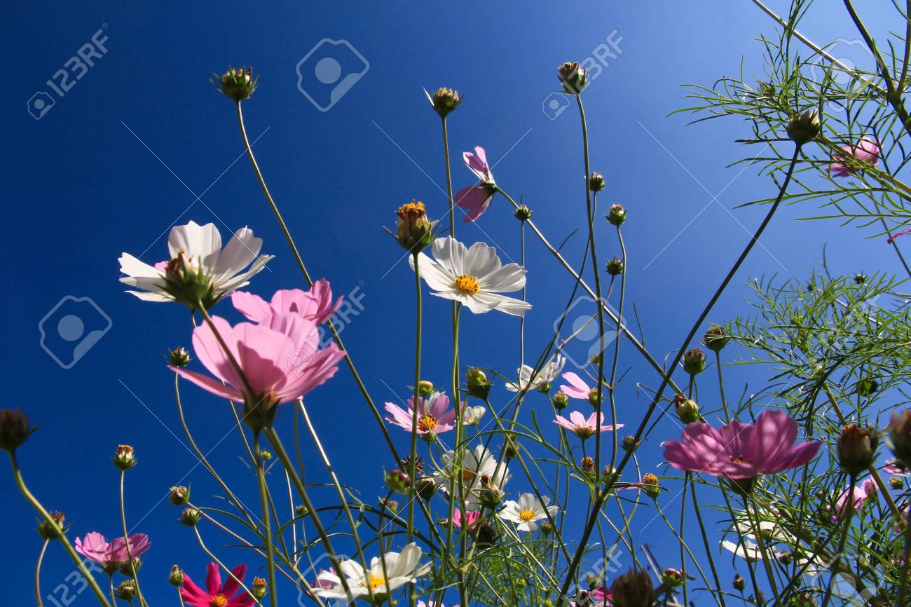 Flores De Colores En El Cielo Azul Oscuro En Los Dias Soleados Fotos Retratos Imagenes Y Fotografia De Archivo Libres De Derecho Image 72060371