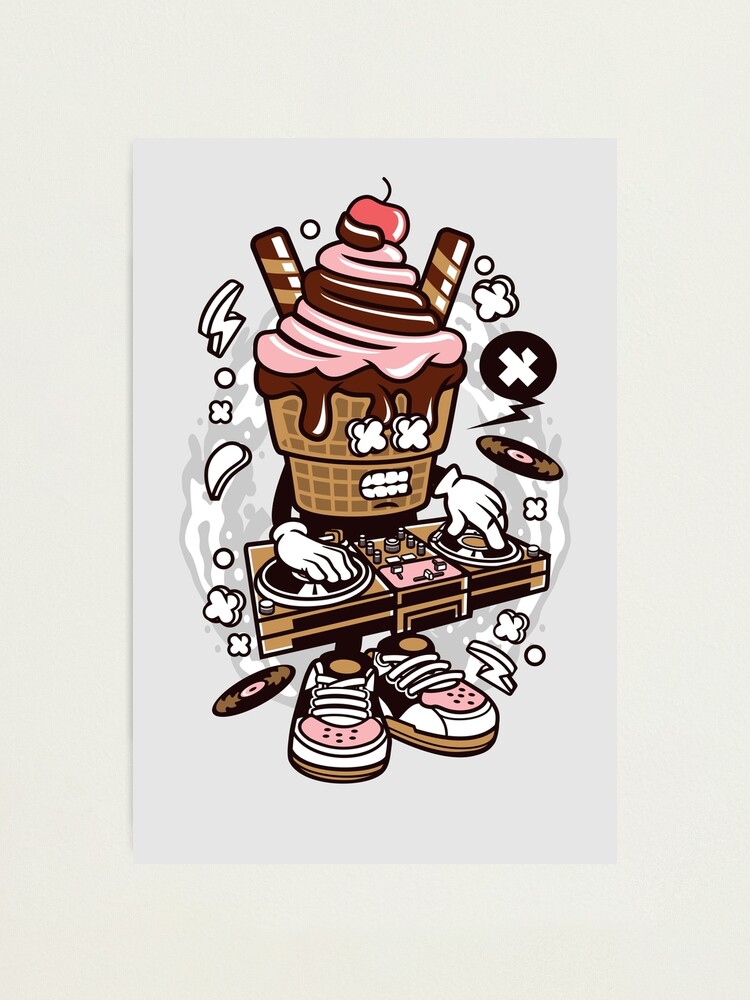 Lamina Fotografica Personaje De Dibujos Animados De Dj Ice Cream Diseno De Camiseta Para Las Personas Que Aman Dance Club Music Party Fun De Nickelparis Redbubble