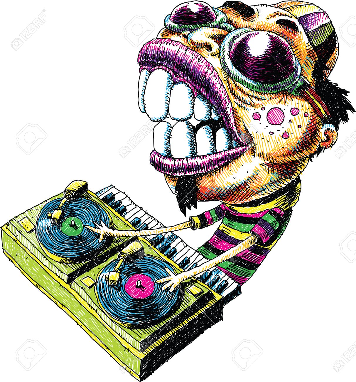 Un Intenso Dj Mezclando Musica De Dibujos Animados Giradiscos De Vinilo Ilustraciones Vectoriales Clip Art Vectorizado Libre De Derechos Image 29157073