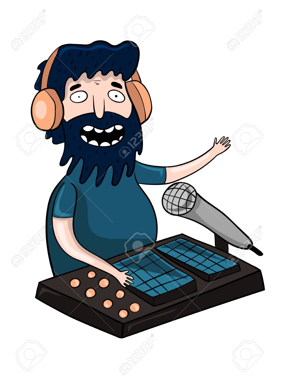 Radio De Dibujos Animados Dj Lleva Una Transmision En Vivo Ilustracion Vectorial Ilustraciones Vectoriales Clip Art Vectorizado Libre De Derechos Image 98802805