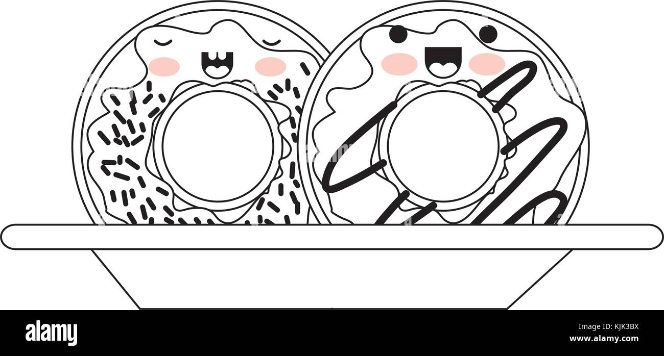 Kawaii Donas Con Crema Glaze En Dish Silueta En Negro Sobre Fondo Blanco Imagen Vector De Stock Alamy