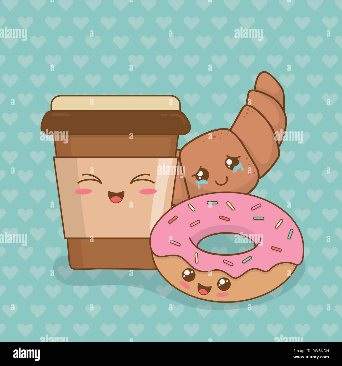 Caricaturas De Donas Y Cafe Kawaii Caricaturas De Dulces Kawaii Con Cara De Sorpresa Sobre Fondo Blanco Ilustracion De Canstock