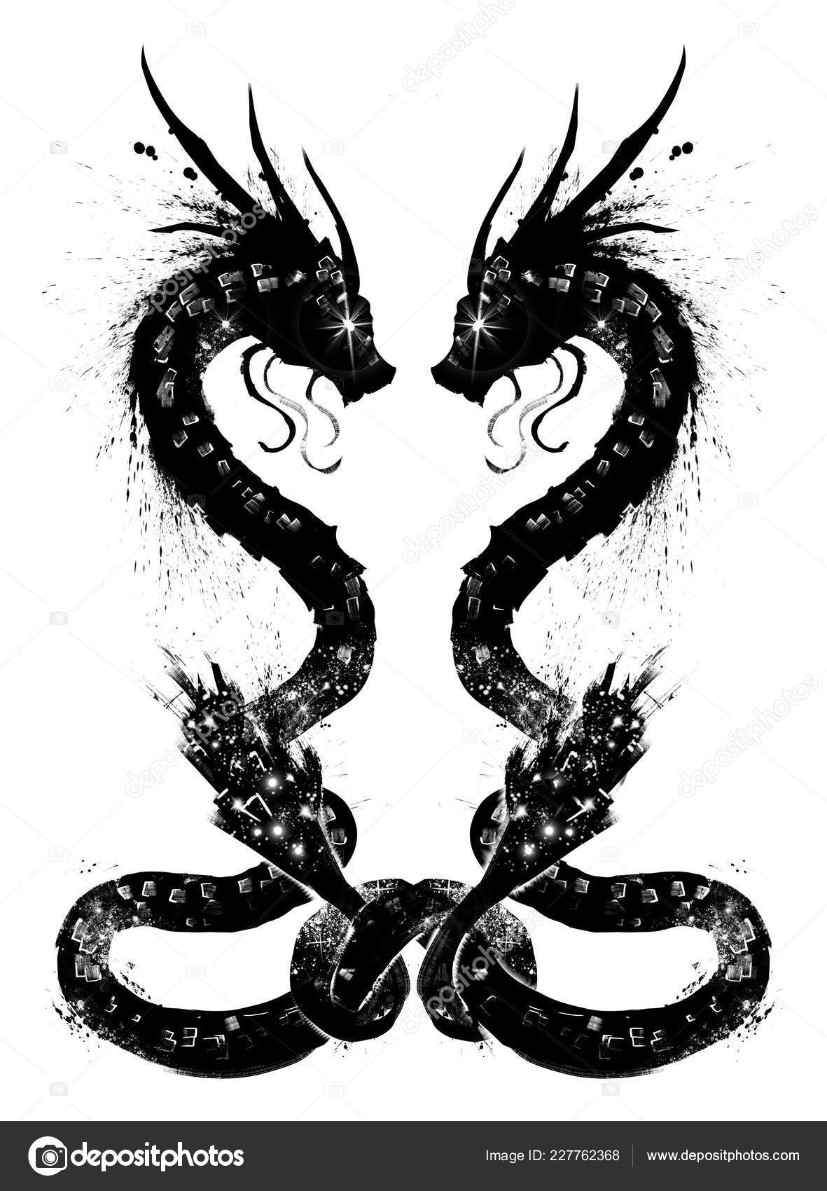 Vector De Stock Libre De Regalias Sobre Juego De Dragones Chinos Tatuaje Tribal78596104