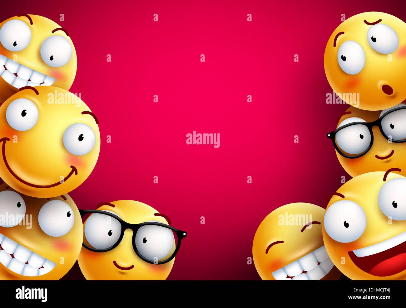 Emoticones Antecedentes Vectoriales Smileys O Emoticonos Amarillo Con Divertidas Y Felices Expresiones Faciales En Vacio En Blanco Sobre Fondo Rojo Para El Texto Vector Imagen Vector De Stock Alamy