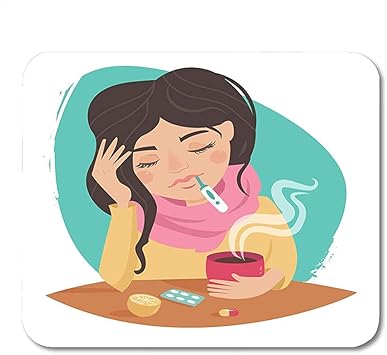 Alfombrillagamingcon Chica Enferma De Gripe Resfriado Medicamentos Termometro Te Limon Cuadernos De Dibujos Animados Alfombrillas De Raton Alfombrilla De Raton 25x30cm Suministros De Oficina Com Amazon Es Electronica