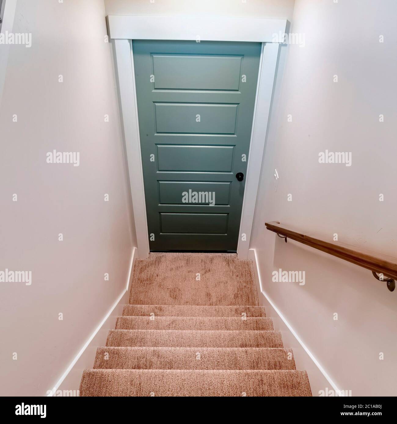 Escaleras Interiores Cuadradas De La Casa Con Escalones Alfombrados Que Conducen A La Puerta Del Sotano Fotografia De Stock Alamy