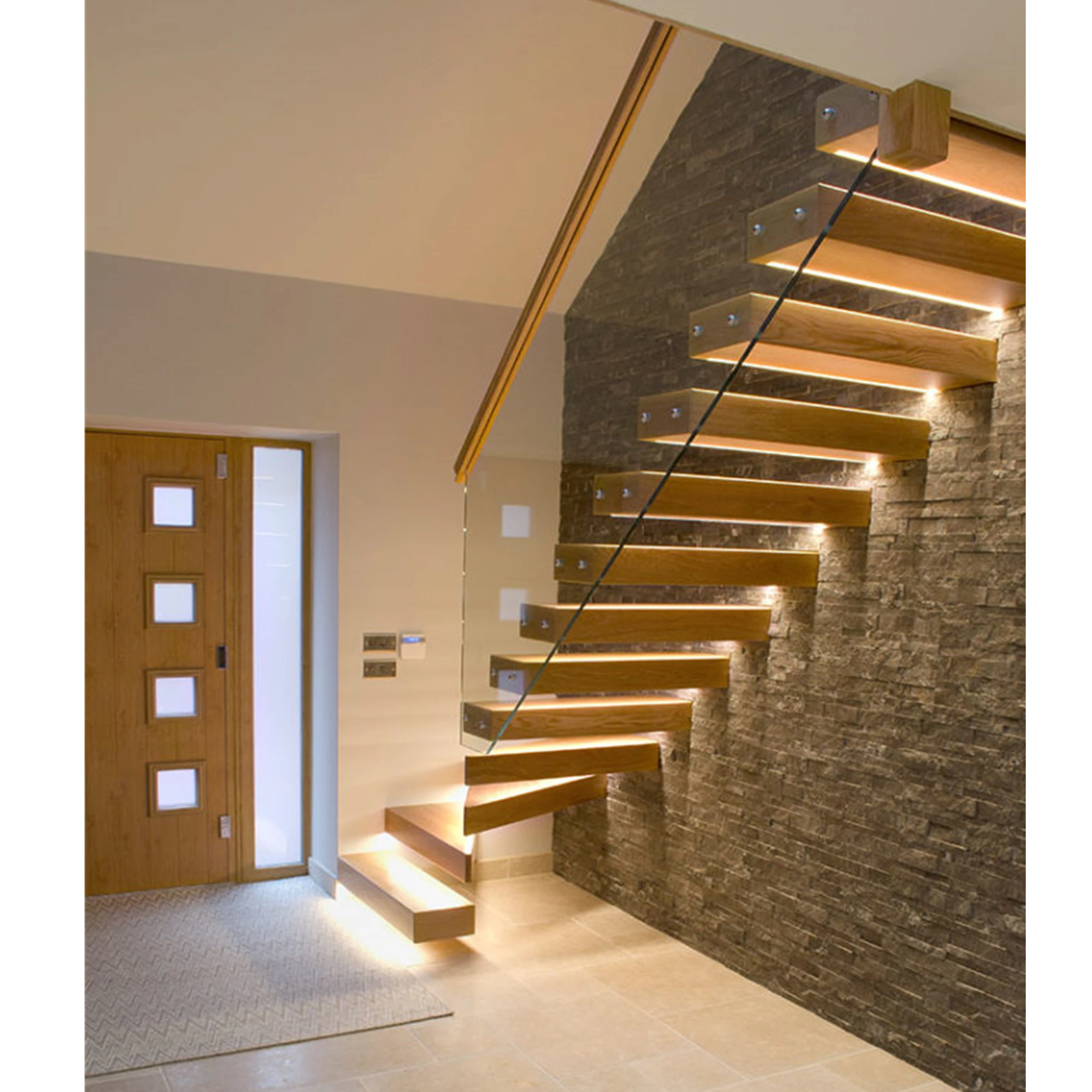 Escaleras Modernas De Madera Con Luces Integradas Diseno De Escalera Escaleras Interiores Escaleras Modernas