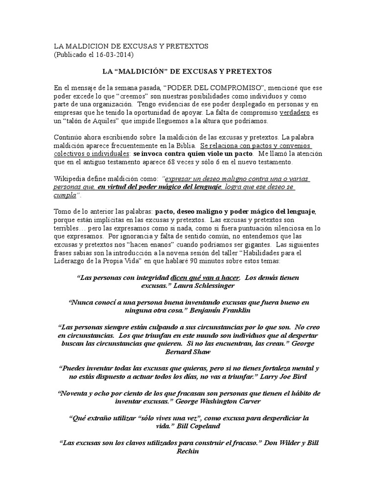 De Excusas Y Pretextos