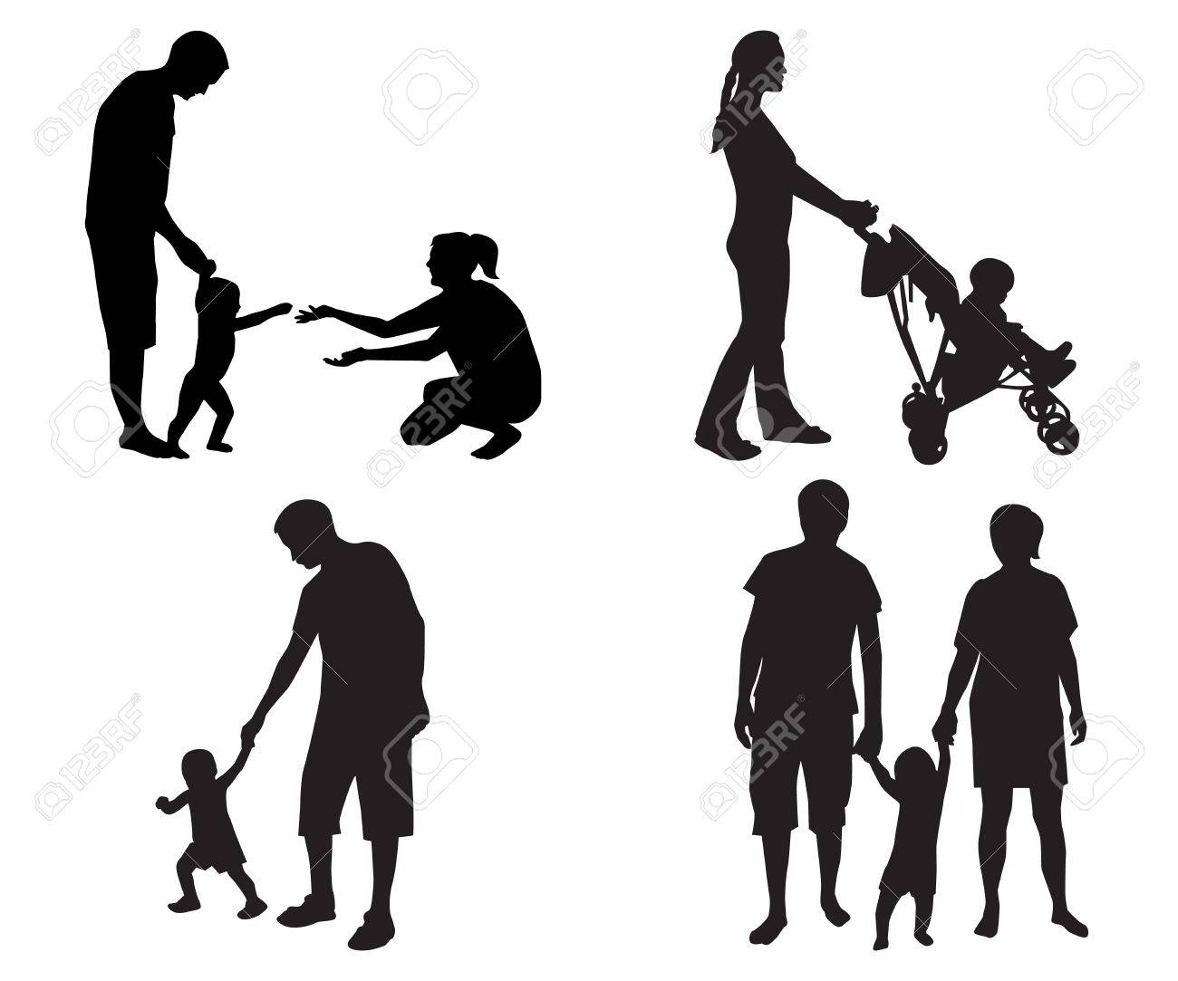 Siluetas Negras De Familias Con Ninos En Un Fondo Blanco Ilustraciones Vectoriales Clip Art Vectorizado Libre De Derechos Image 21644826