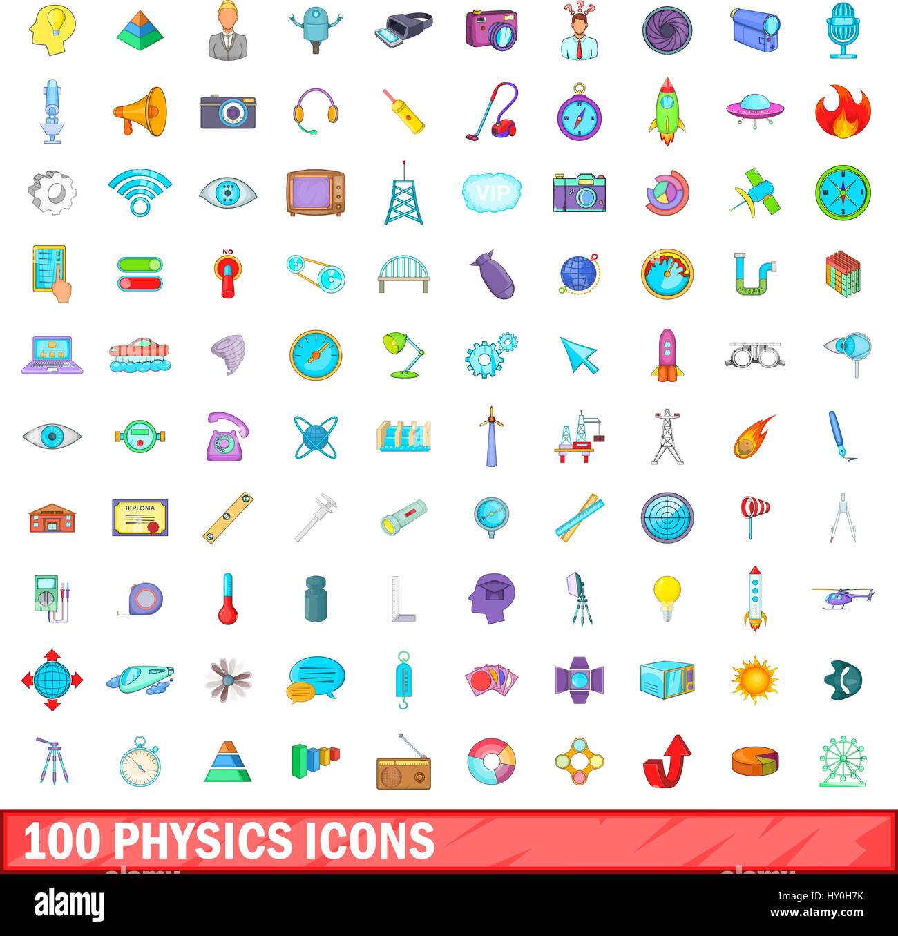 100 Fisica Establecida Los Iconos De Estilo De Dibujos Animados Imagen Vector De Stock Alamy