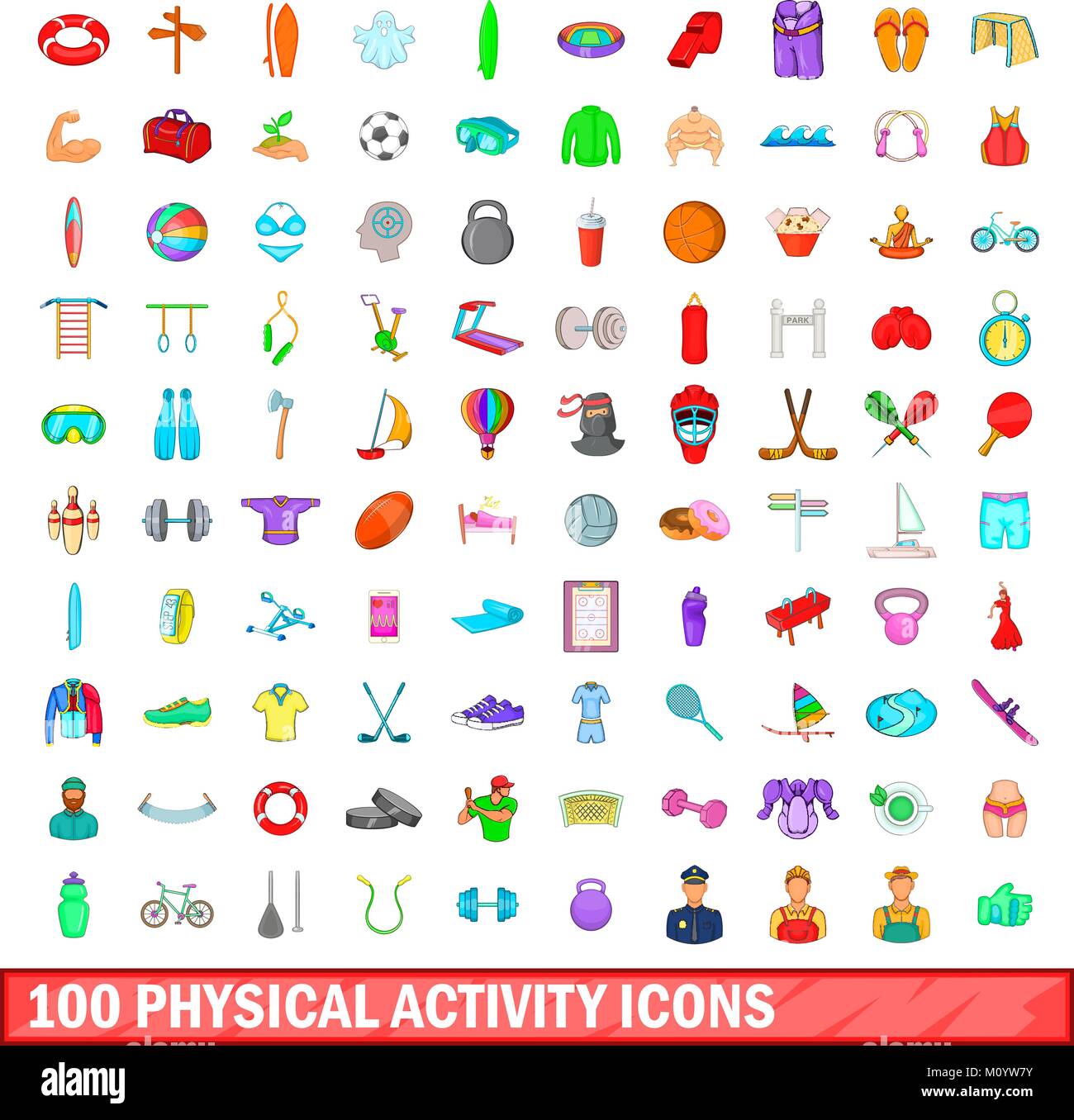 100 Iconos De Actividad Fisica Estilo De Dibujos Animados Imagen Vector De Stock Alamy