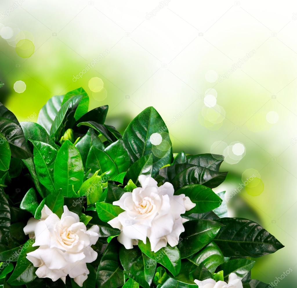Hermosa Gardenia De Flores Blancas En El Fondo Verde Hermosa Gardenia De Flores Blancas En Un Fondo Verde Canstock