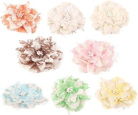 Amosfun 8pcs Flores De Arpillera Diy Encaje Rosa Flores Pequenas Flores Rusticas Adornos Para Manualidades Costura Vendas Bebe Ninas Pelo Flor Amazon Es Hogar