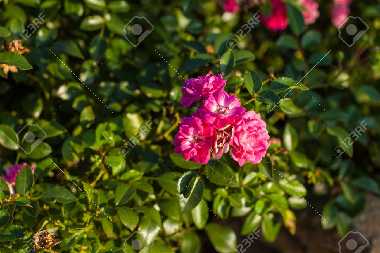 Flores Pequenas Rosas De Color Rosa Sobre Un Fondo Acera Follaje Fotos Retratos Imagenes Y Fotografia De Archivo Libres De Derecho Image 64186149