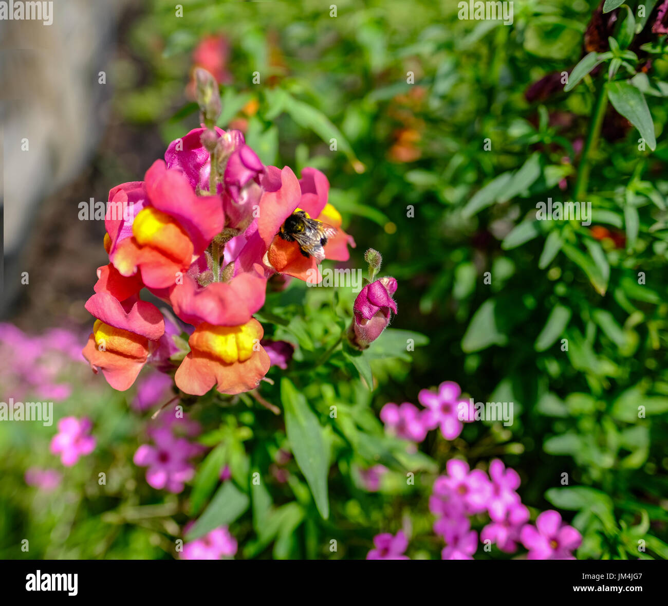 Snapdragon Flor Cercano Con Una Abeja Polinizando Las Flores Preciosas Rosas Y Amarillo En Las Flores Fotografia De Stock Alamy