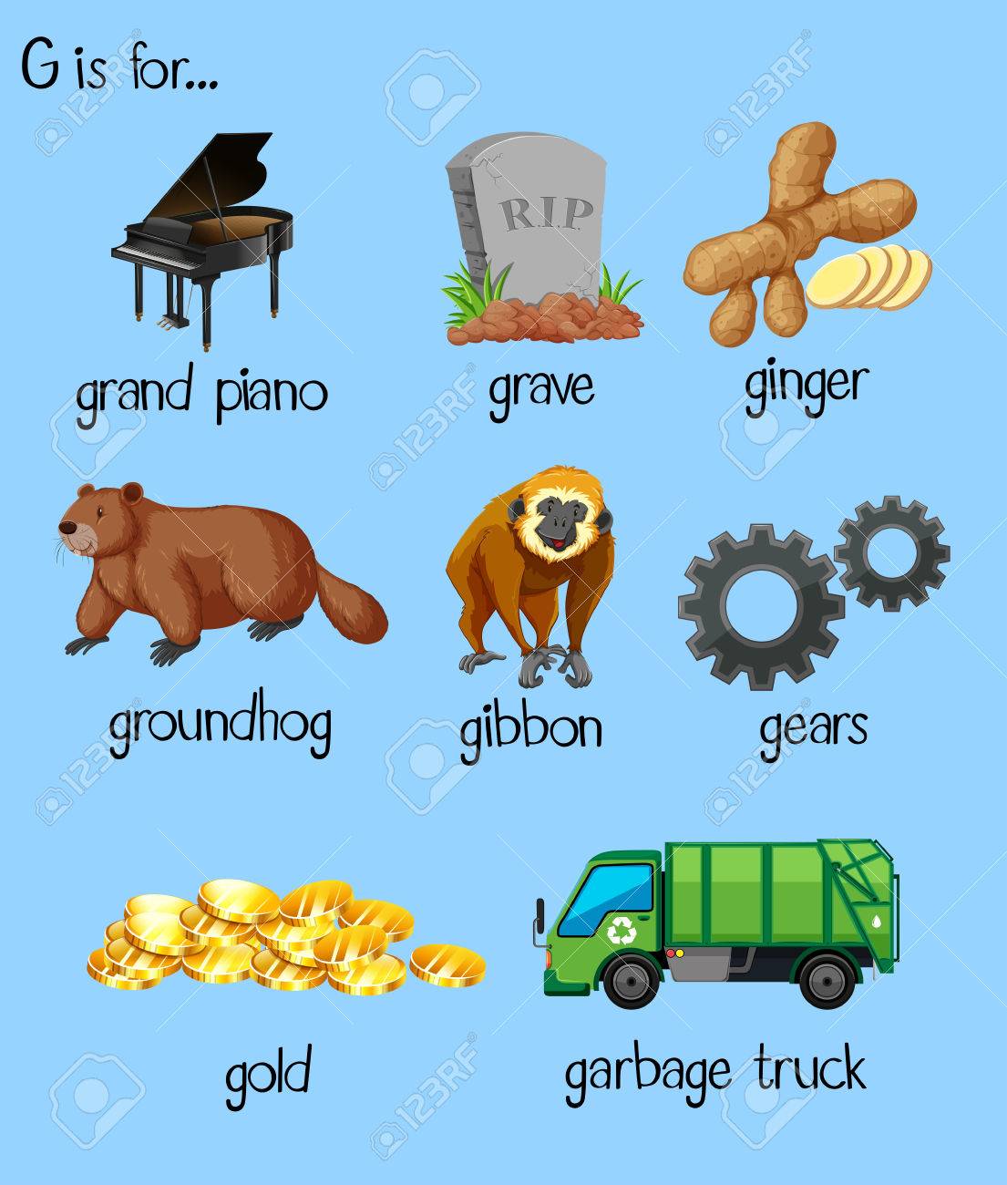 Muchas Palabras De G Del Alfabeto De La Ilustracion Ilustraciones Vectoriales Clip Art Vectorizado Libre De Derechos Image 55638582