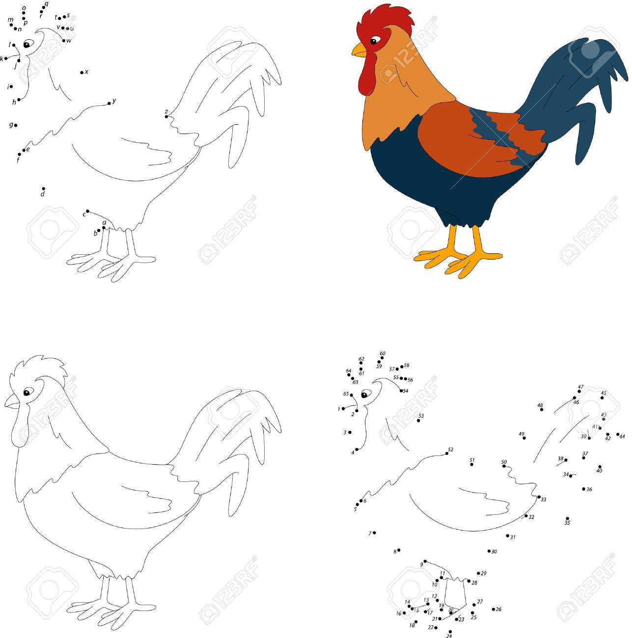 De Dibujos Animados Gallo Colorido Libro Para Colorear Y Punto A Punto Juego Educativo Para Ninos Ilustraciones Vectoriales Clip Art Vectorizado Libre De Derechos Image 56398153