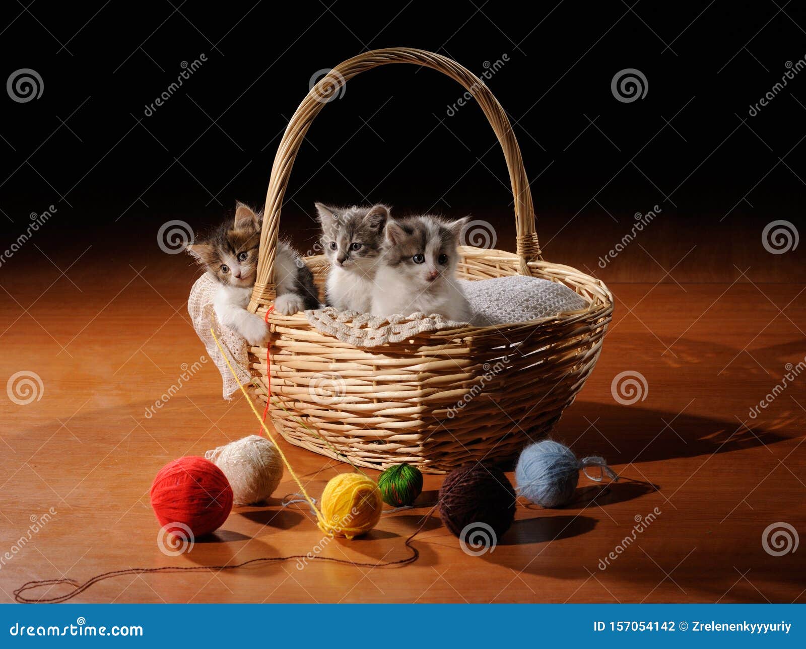 Gatos Graciosos En Canasta Foto De Archivo Imagen De Gatos 157054142