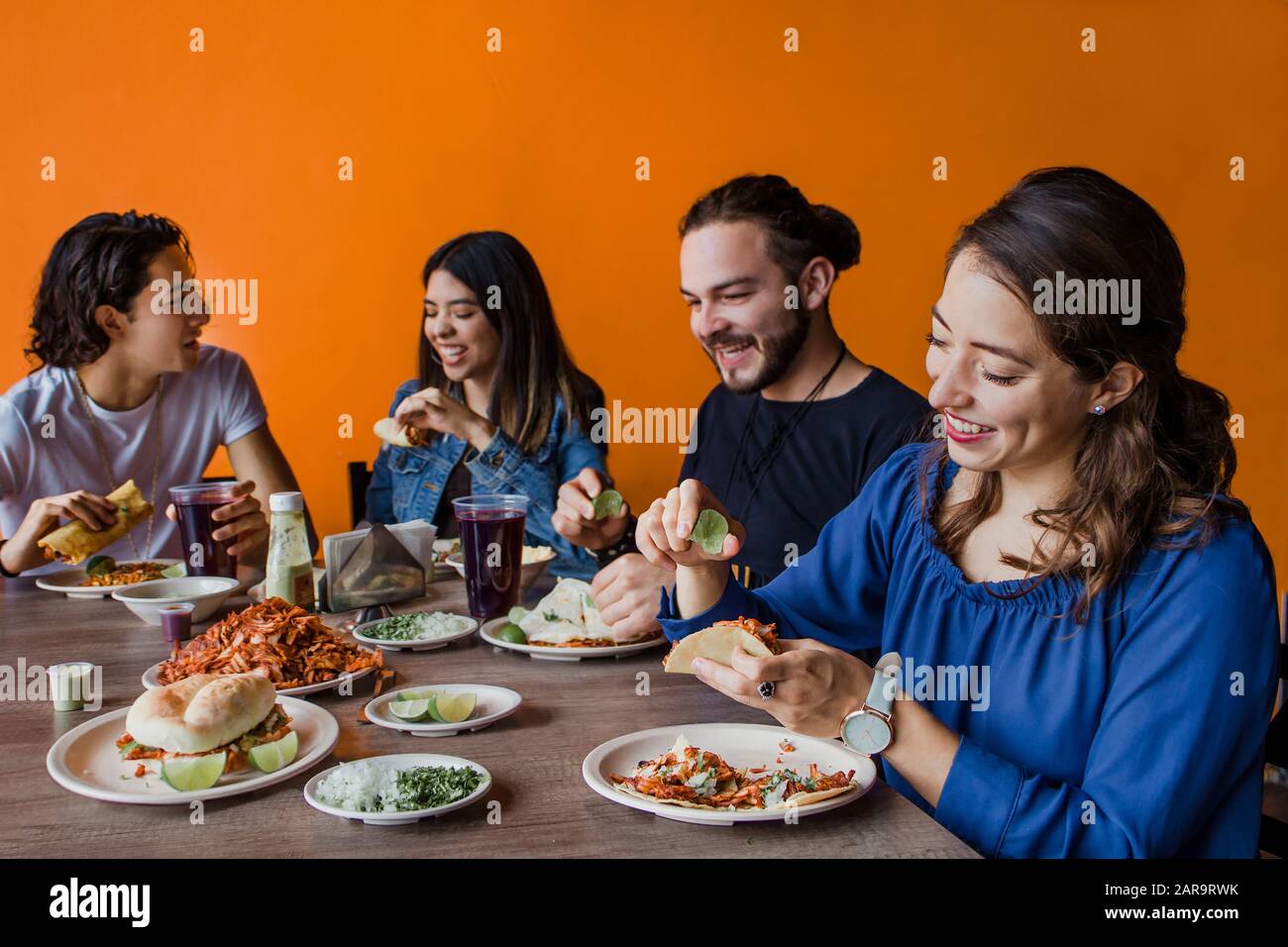 Gente Mexicana Comiendo Tacos Al Pastor En Una Taqueria En La Ciudad De Mexico Fotografia De Stock Alamy