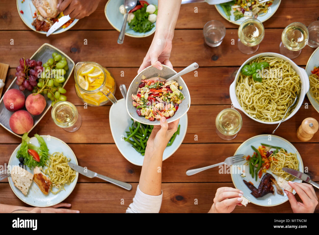 Ensalada De Gente Comiendo En La Mesa Con La Comida Fotografia De Stock Alamy