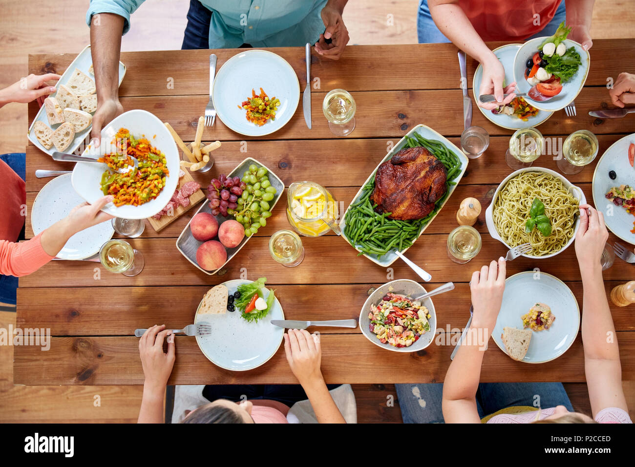 Grupo De Gente Comiendo En La Mesa Con La Comida Fotografia De Stock Alamy