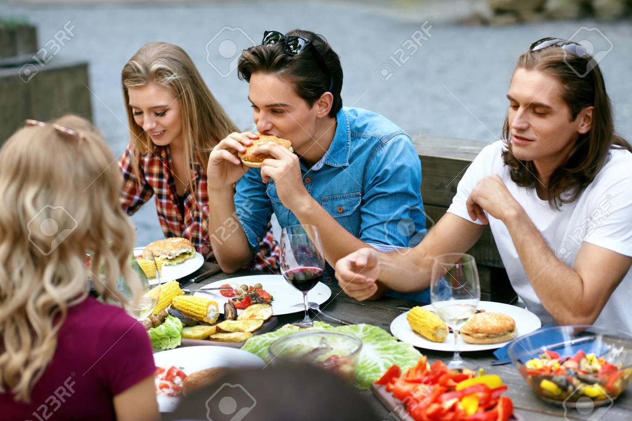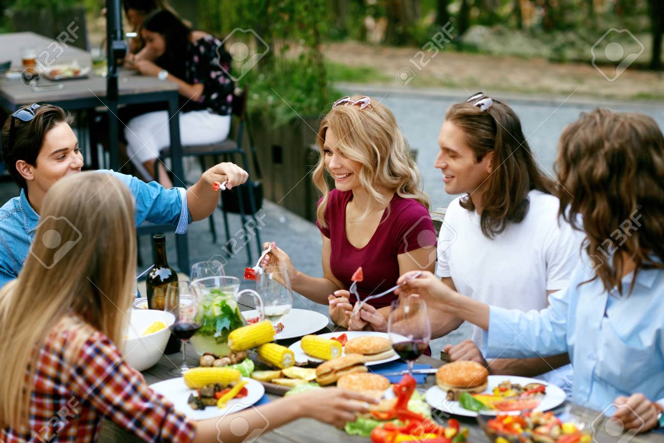 Grupo De Gente Comiendo En La Mesa Con La Comida Mbrtjb Info Rural