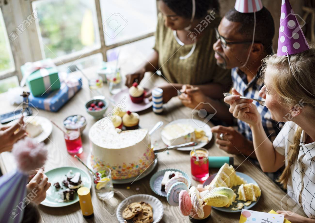 Gente Comiendo Pastel En La Celebracion De La Fiesta De Cumpleanos Fotos Retratos Imagenes Y Fotografia De Archivo Libres De Derecho Image 79647618
