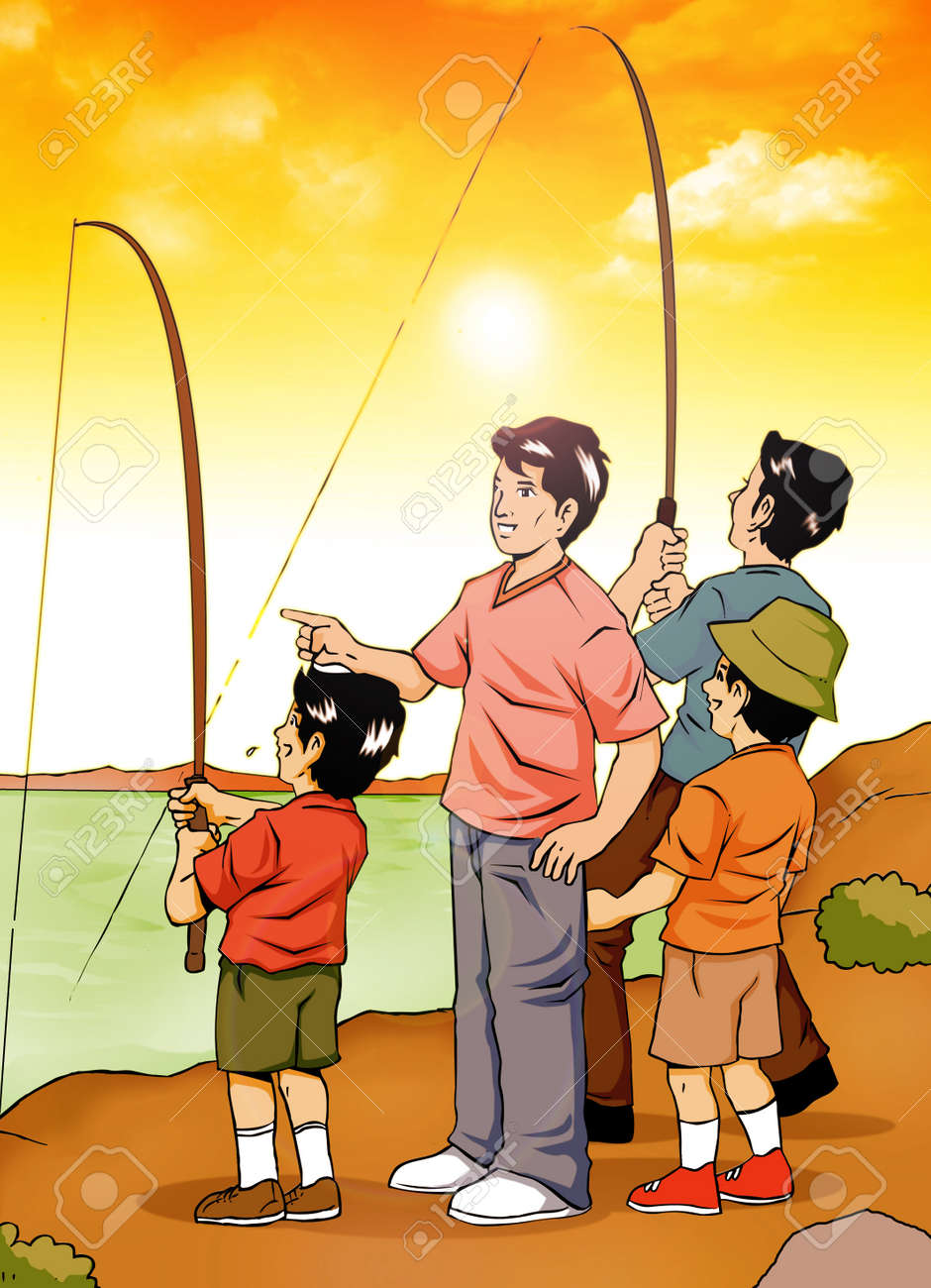 Padre E Hijo De Pesca Gente Ilustracion De Dibujos