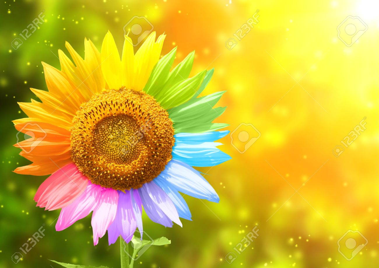 Girasol Con Petalos Pintados En Diferentes Colores Fotos Retratos Imagenes Y Fotografia De Archivo Libres De Derecho Image 46702384