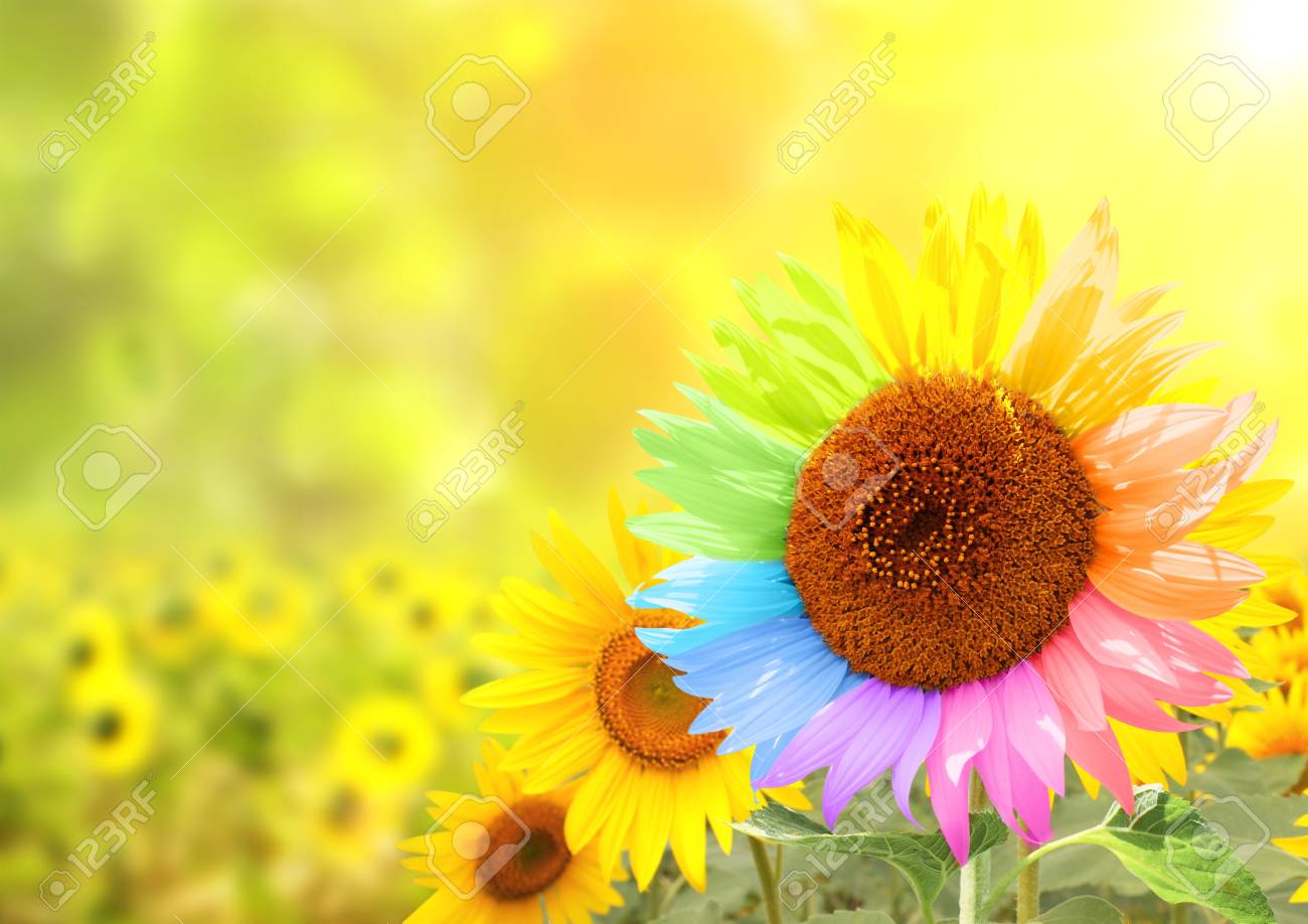 Concepto Ser Tu Mismo Ser Unico Girasol Con Petalos Pintados En Colores Del Arco Iris Fotos Retratos Imagenes Y Fotografia De Archivo Libres De Derecho Image 78269859