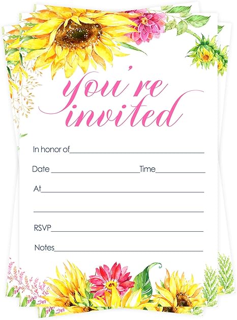 Amazon Com Invitaciones De Boda Para Fiesta De Girasol Para Bodas Otono Girasoles Rusticos Rusticos Margaritas Amarillas Brillantes 24 Unidades Health Personal Care