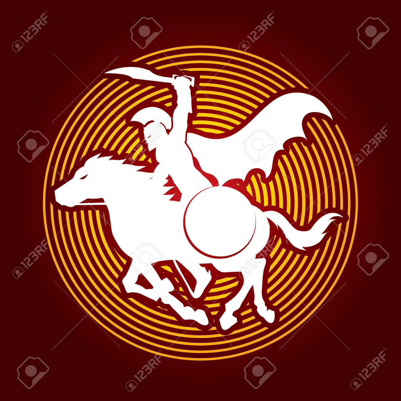 Jinetes Guerreros Espartanos Con Una Espada Listo Para Luchar Disenados En El Circulo De Luz De Fondo Grafico Vectorial Ilustraciones Vectoriales Clip Art Vectorizado Libre De Derechos Image 69018118