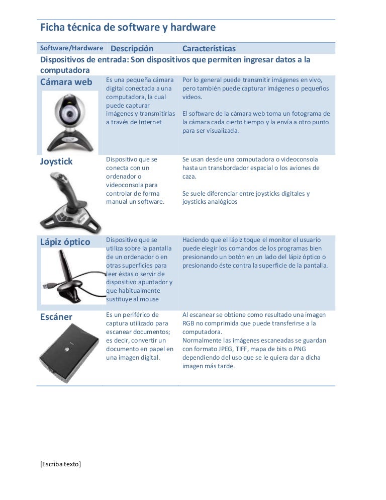 Hardware Ejemplos Con Sus Pricipales Caracteristicas