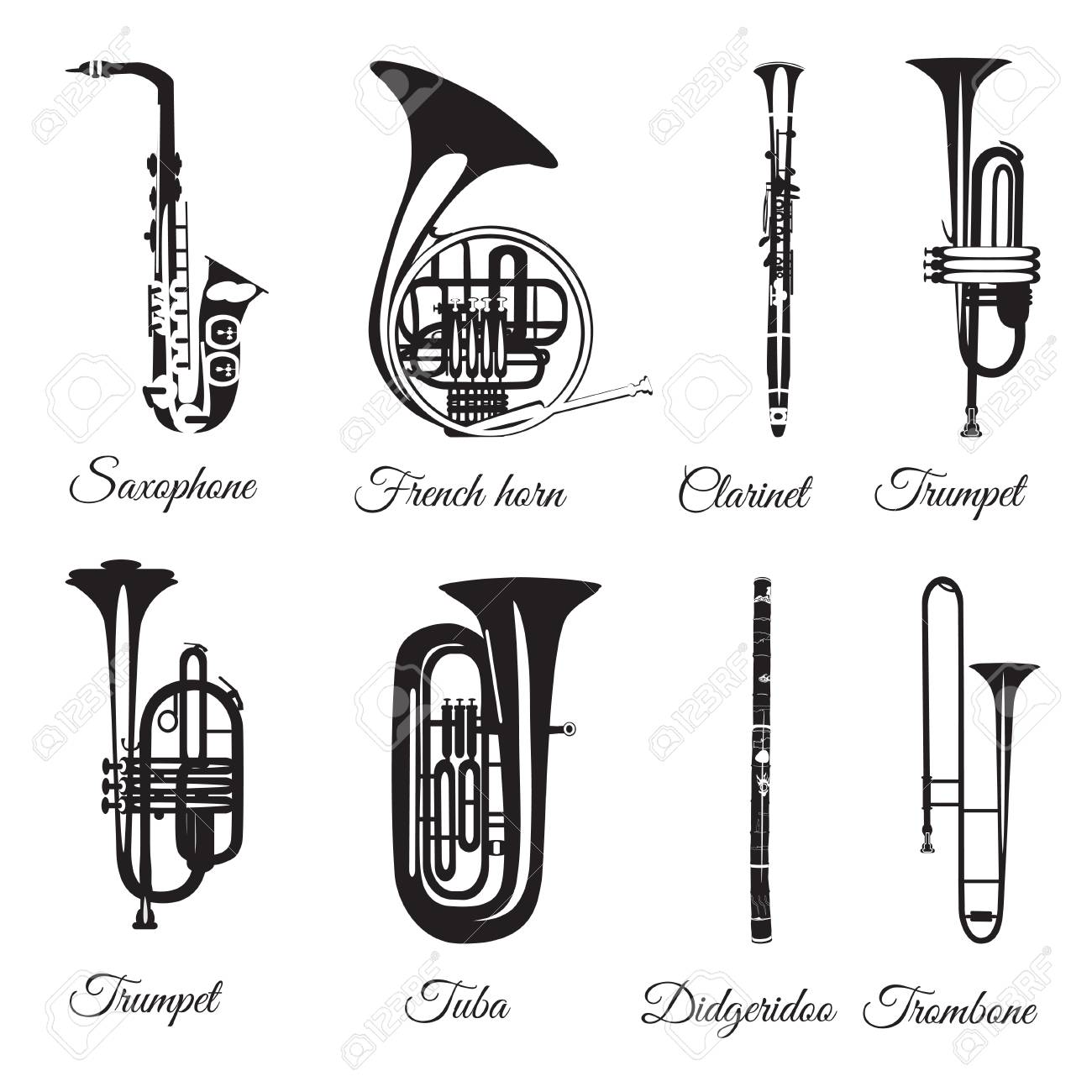 Vector Conjunto De Instrumentos Musicales De Viento Saxofon Clarinete Trompeta Trombon Tuba Trompa Y Didgeridoo Ilustraciones Vectoriales Clip Art Vectorizado Libre De Derechos Image 78677964