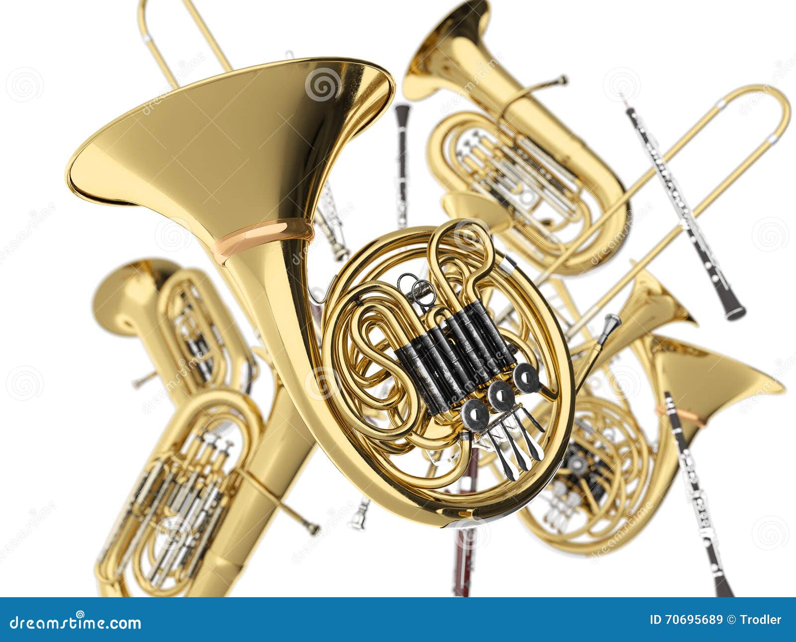 Instrumentos Musicales De Viento Aislados Bajo El Fondo Blanco Canstock