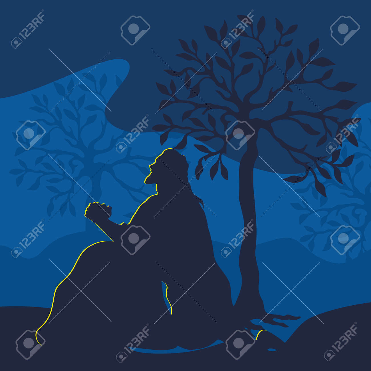Ilustracion De Jesus Orando En Getsemani En La Vispera De La Crucifixion Ilustraciones Vectoriales Clip Art Vectorizado Libre De Derechos Image 47998833
