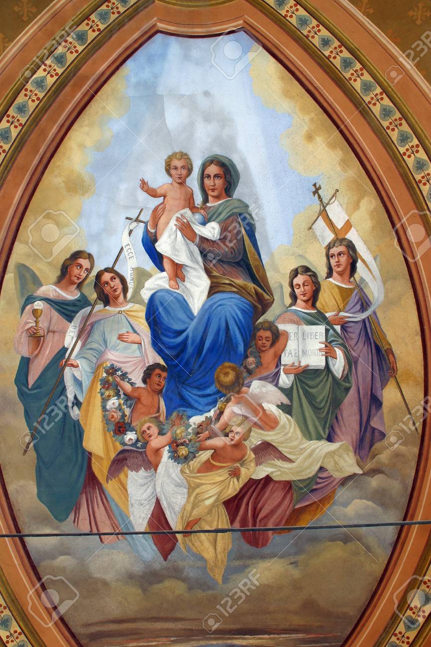 Bendita Virgen Maria Con El Nino Jesus Los Santos Y Los Angeles Fotos Retratos Imagenes Y Fotografia De Archivo Libres De Derecho Image 35429465