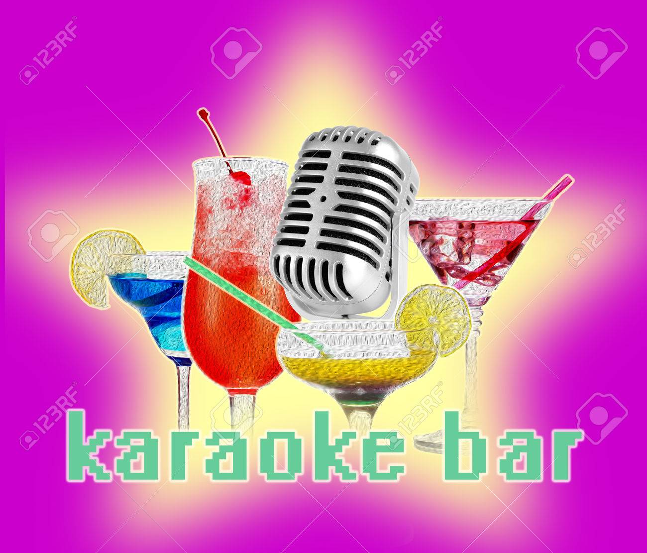 Retro Microphone And Cocktails On Bright Color Background Karaoke Stock Photo Picture And Royalty Free Image Image 36074131