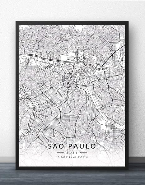 Impresion De Lienzo Mapa De La Ciudad De Sao Paulo Brasil En Blanco Y Negro Texto