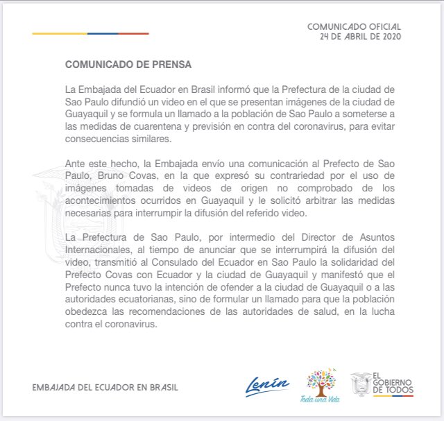 Embajada Ec Brasil On Twitter Diplomaciaactiva La Embajada Del Ecuador En Brasil Emitio Un Comunicado En Relacion A La Difusion De Un Video Con Imagenes De La Ciudad De Guayaquil Por Parte