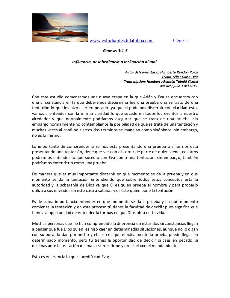 11 Genesis 3 1 5 Influencia Desobediencia O Inclinacion Al Mal