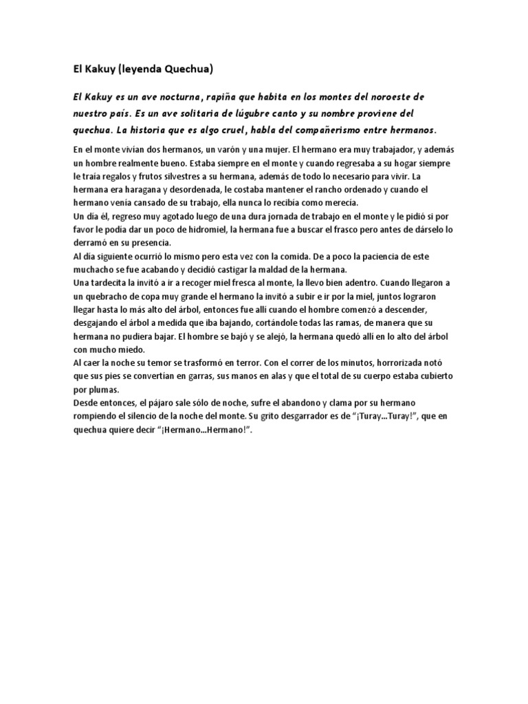 Mis Lecturas Diarias El Kakuy Leyenda Quechua