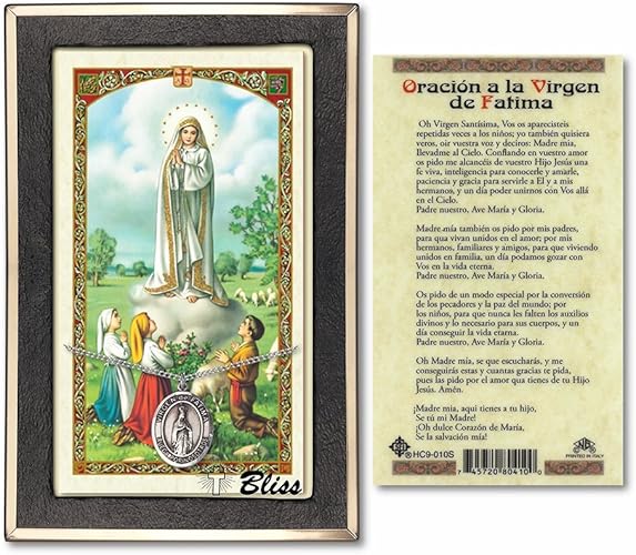 Amazon Com Plata De Ley Virgen Del Fatima En Un 18 Inch Curb Cadena Con Una Tarjeta De Oracion Para Oracion Nuestra Senora De Fatima Jewelry