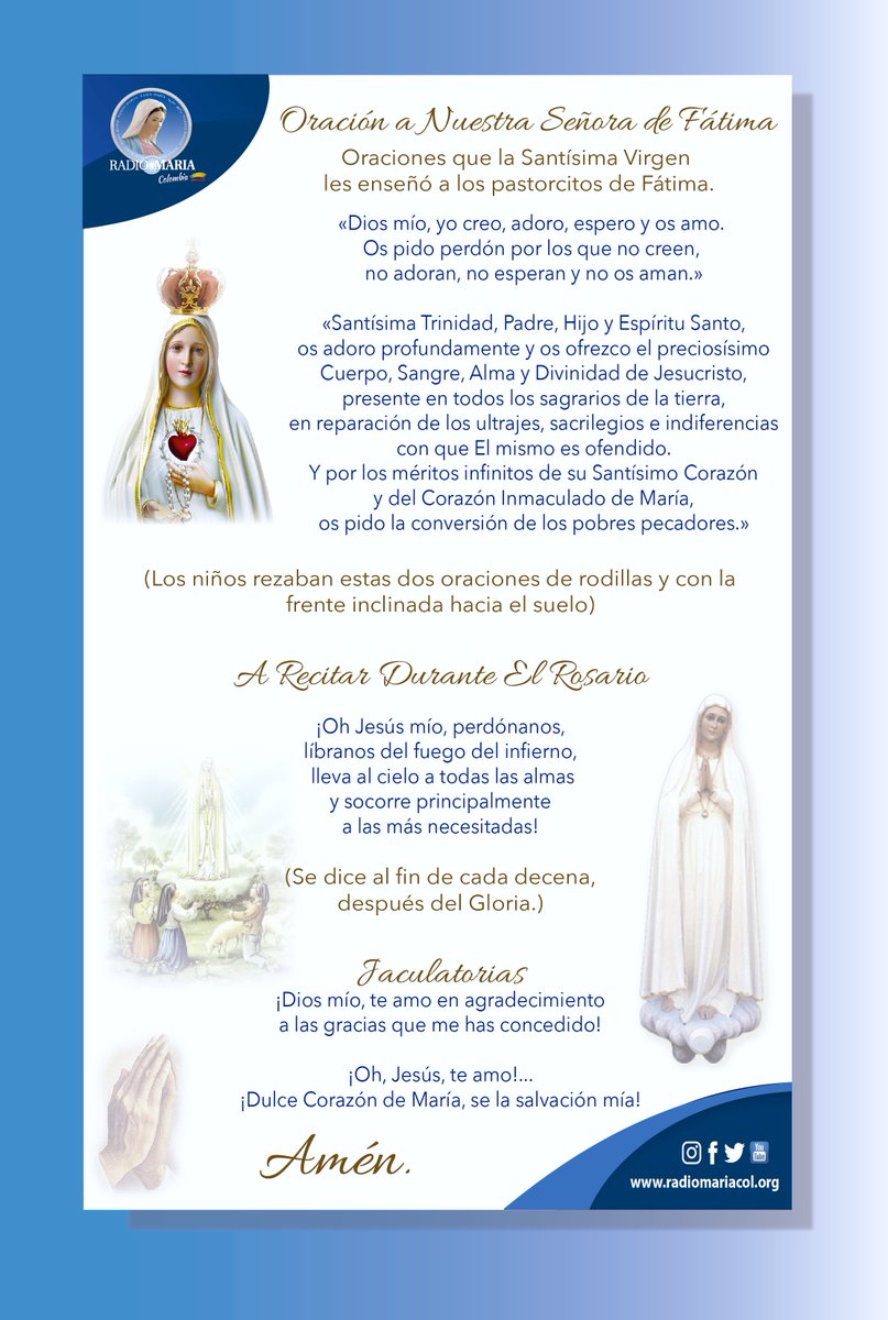 Rmariacolombia En Twitter En Nuestra Seccion De Oraciones Te Compartimos Las Hermosas Oraciones Que La Santisima Virgen Les Enseno A Los Pastorcitos De Fatima Oraconnosotros Https T Co Tnceaipo5c