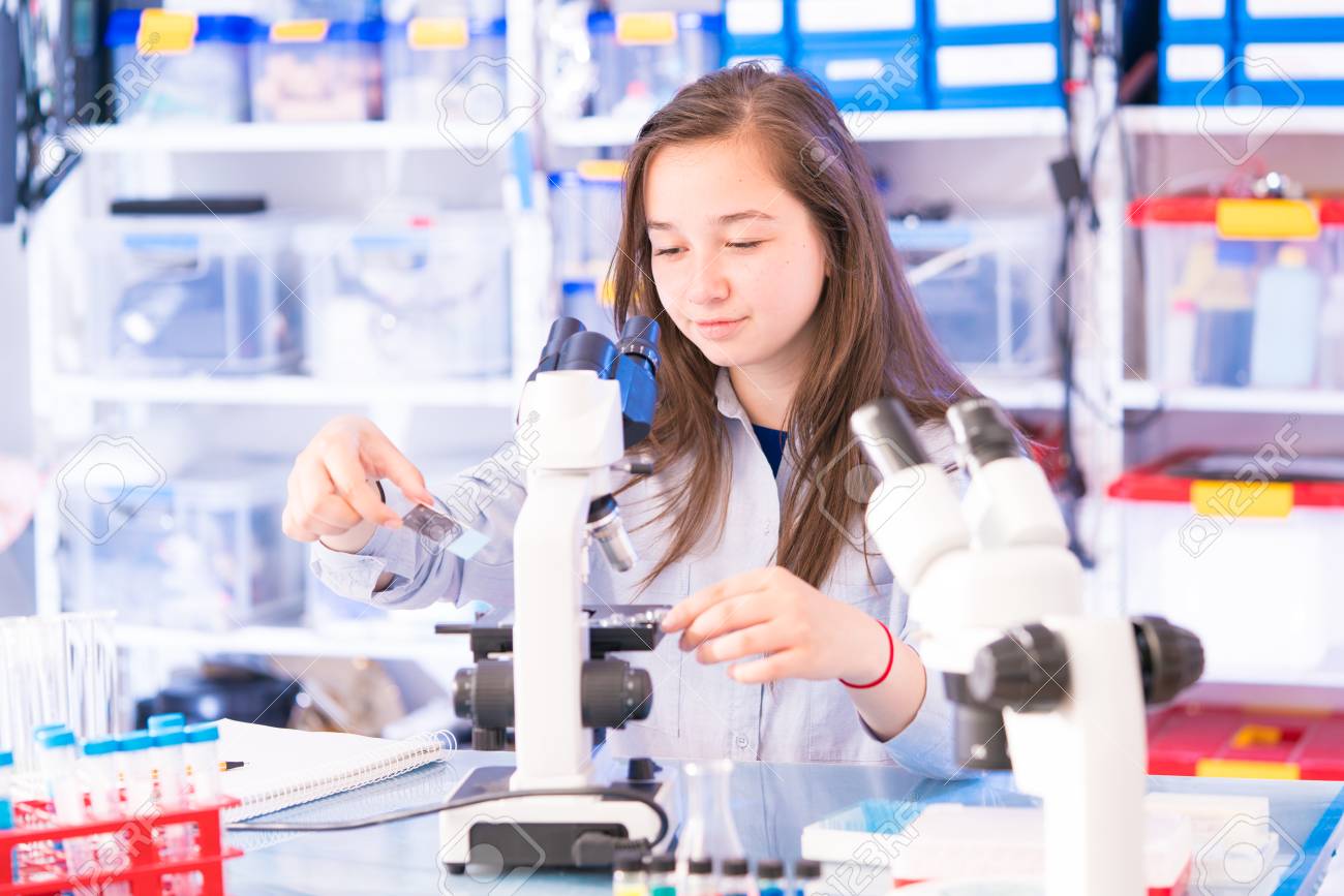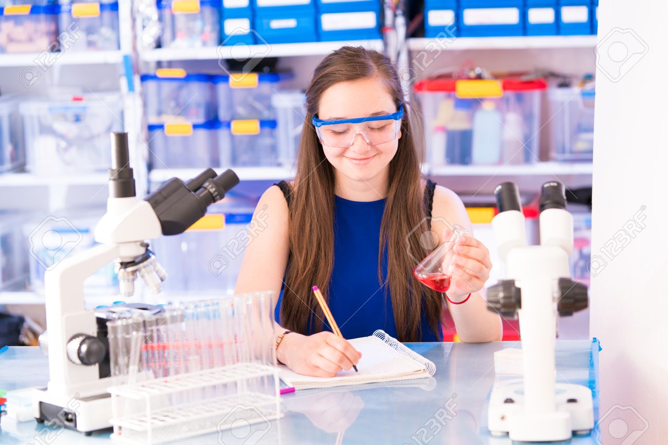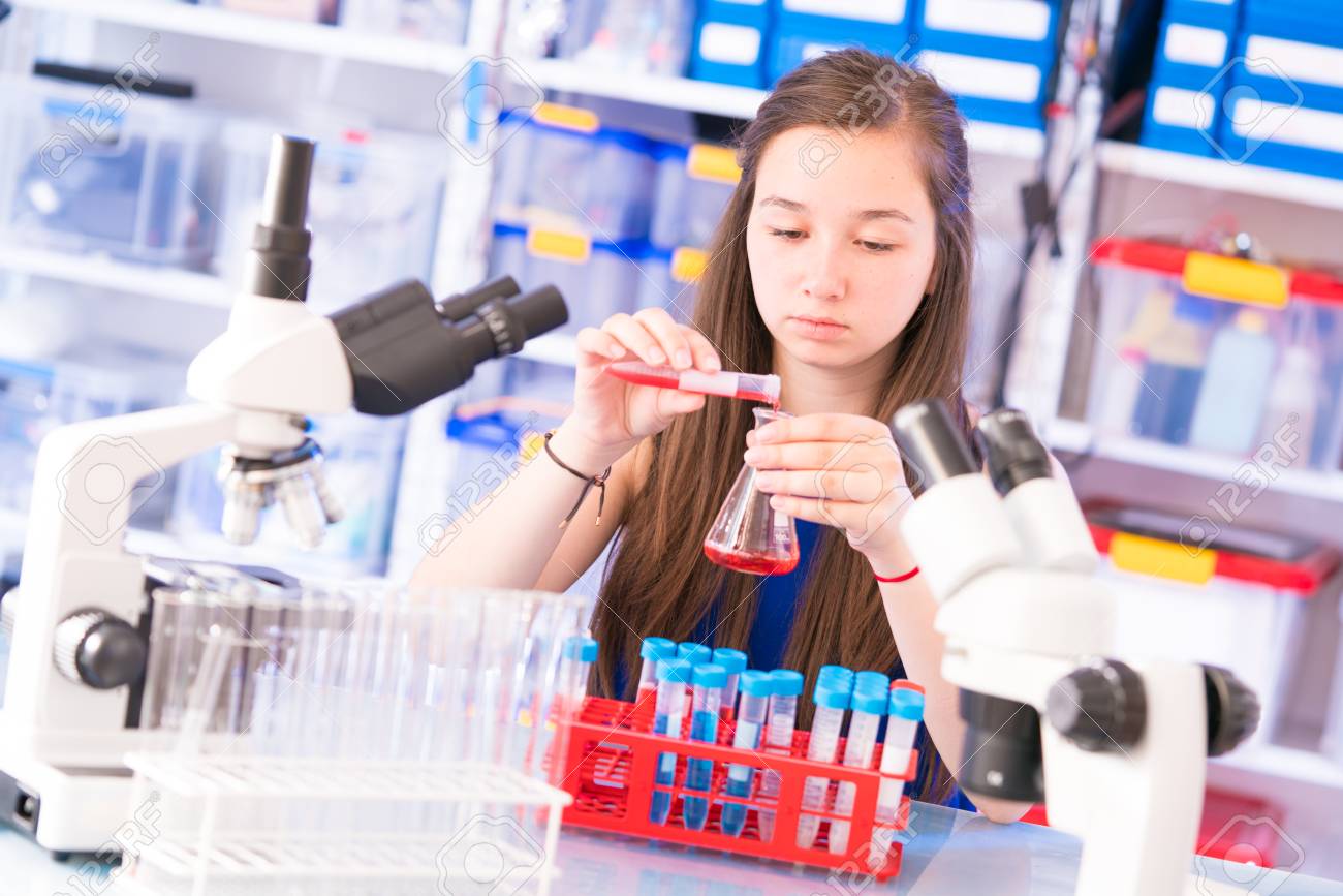 Una Adolescente En Un Laboratorio Escolar En Las Clases De Quimica Y Biologia Fotos Retratos Imagenes Y Fotografia De Archivo Libres De Derecho Image 84877762